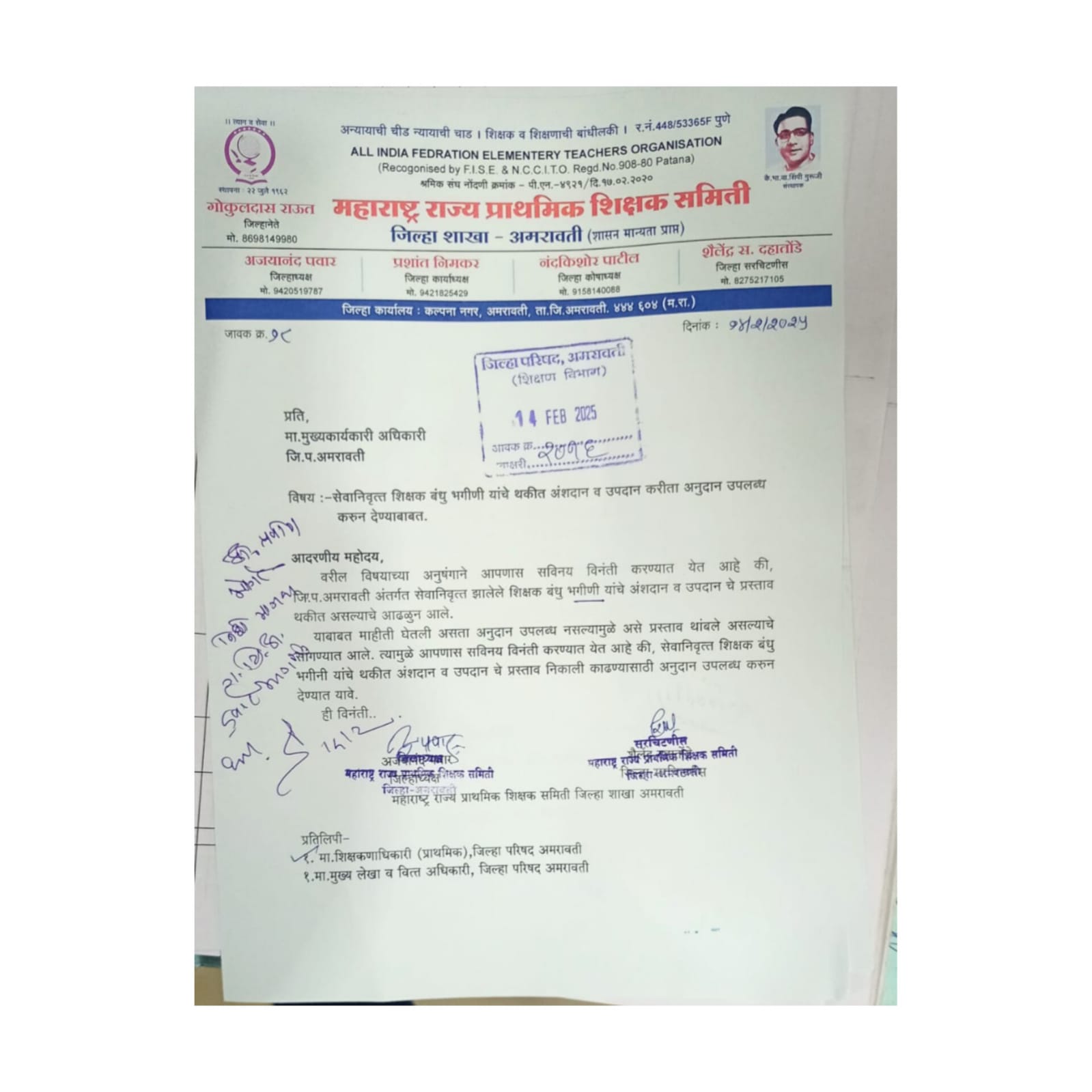 अमरावती जिल्हा परिषद मधिल सेवानिवृत्त शिक्षकांचे २८कोटी अंशदान उपदान रक्कम स्थकली