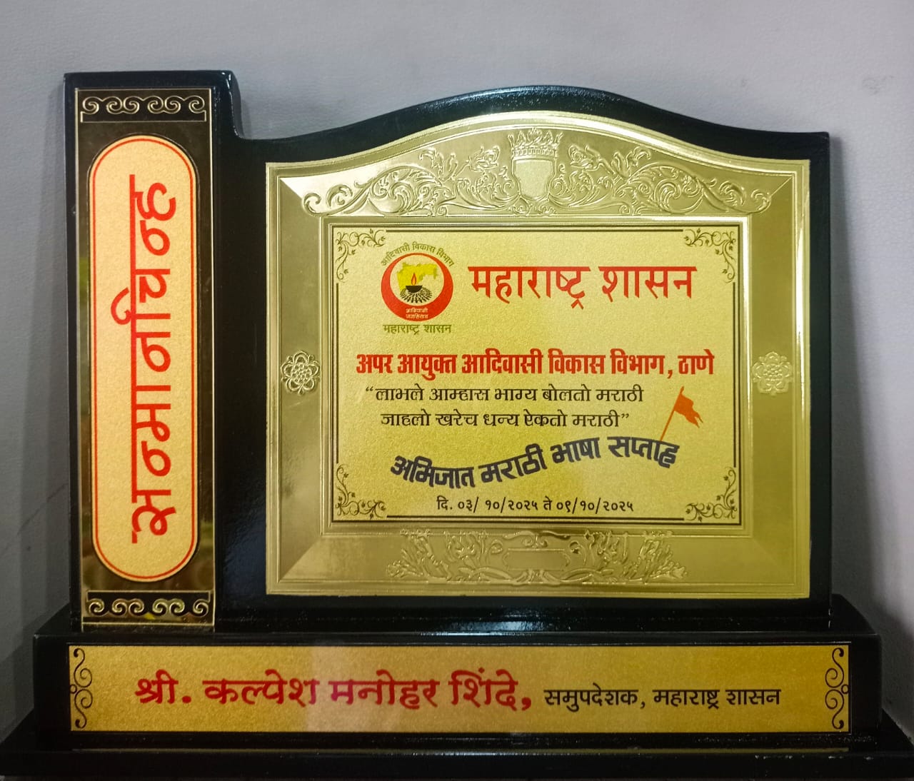अभिजात मराठी भाषा सप्ताह निमित्त मराठी भाषा, मराठी संस्कृती टिकली पाहिजे यासाठी मराठी भाषेचे महत्व आणि आपली जबाबदारी या विषयावर महाराष्ट्र शासन नियुक्त समुपदेशक कल्पेश मनोहर शिंदे सर यांनी व्याख्यान दिले आणि कवी रमेश तारमले सर यांनी कविता सादर करून मराठी भाषेचे महत्व वाढवण्यासाठी प्रोत्साहित केले. अभिजात मराठी भाषा सप्ताह निमित्ताने कल्पेश शिंदे सर व रमेश तारमले सर यांना अप्पर आयुक्त कदम यांच्या शुभहस्ते सन्मानित करण्यात आले. या विभागात कार्यरत असणारे निलेश पाटील सर आणि त्यांचे सर्व सहकारी यांनी कार्यक्रमाचे अप्रतिम आयोजन नियोजन हृदयाच्या कंपित साठवण्याजोगे होते. मराठी भाषा आपण जपली पाहिजे, टिकली पाहिजे यासाठी आपण सर्वजण प्रतिज्ञा करूया