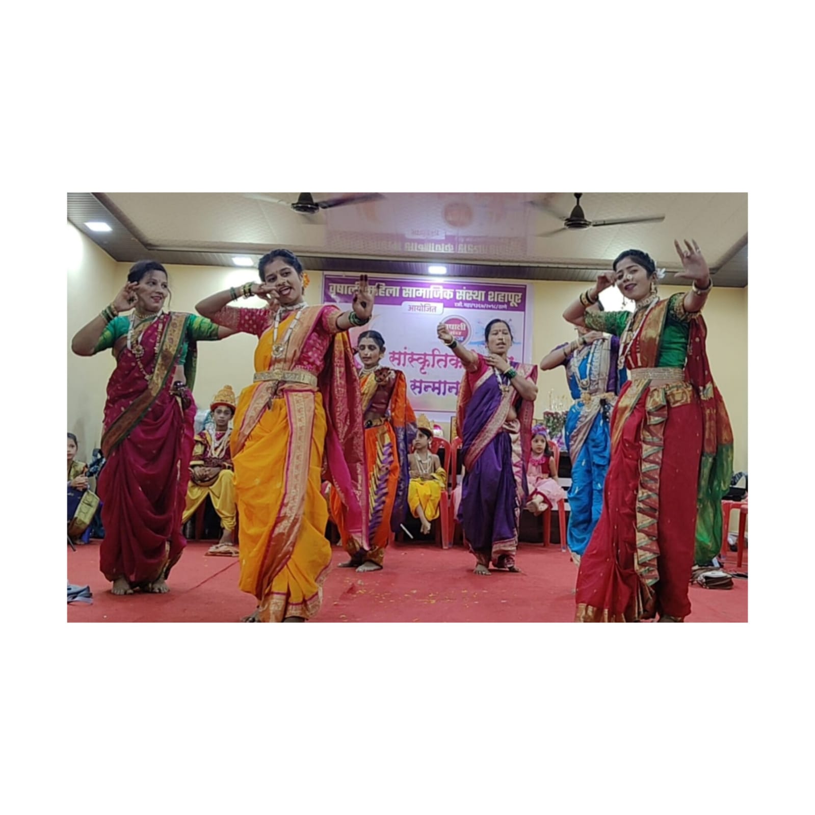 महिलांच्या स्टेजवरील सामूहिक नृत्य सादरीकरणा सोबतच शहापूर तालुक्यातील प्रसिद्ध १५, भजनी गायीका, ७ संगीत गुरुवर्य ८ वादक व हरिपाठ मंडळ यांचा सन्मान व दत्तात्रय ठाकरे सामाजिक परिवर्तन, विद्याताई वेखंडे नारिशक्ती पुरस्कारणे सन्मानित करण्यात आले गायीकांनी गायलेल्या गाण्यावर मुलांनी वेशभूषासह सादरीकरण करण्यात केले या सुंदर सांस्कृतिक सोहळ्यात शिवसेना नेते आदरणीय प्रकाश पाटील यांच्या सौभाग्यवती पुष्पलता प्रकाश पाटील, प्रियांका बरोरा, अपर्णा खाडे, पुष्पा ठाकूर मा.शंकर खाडे साहेब, मा. राजेंद्र विठ्ठल भेरे, रवींद्र भेरे, सुभाष विशे संस्थेच्या वृषाली पाटील, संगीता सोनारे, समन्वयक सुरेश पाटील, विठ्ठल शिर्के, शिवाजी सोनारे, अशोक सोनारे, अखिल भारतीय कलावंत मंचचे बाळू शिंगोळे, रहिवासी संघाचे दत्ता विशे, मा नगरसेवक विनोद भोईर यांच्या हस्ते सर्वाना सन्मानित करण्यात आले, कार्यक्रमास यशस्वी करण्यासाठी पूनम धीर्डे, भारती सोनारे, मेघा पाटील, नम्रता कुडेकर, यांनी विशेष मेहनत घेतली अशी माहिती वृषाली सुरेश पाटील अध्यक्ष वृषाली महिला सामाजिक संस्था यांनी दिली.
