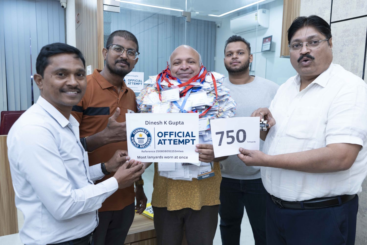 कल्याण.... मराठी अस्मितेचे प्रतीक,दयाळू,मदतगार आणि प्रखर नेतृत्वाची ओळख असलेले बाळासाहेब ठाकरे जे एक कुशल कार्टूनिस्ट आणि कलाकारही होते. त्यांच्या 13 व्या पुण्यतिथीनिमित्त कल्याण येथील प्रेरक वक्ते प्रो. डॉ. दिनेश गुप्ता ‘आनंदश्री’ यांनी एक अनोखा जागतिक विक्रम प्रस्थापित करून त्यांना विशेष श्रद्धांजली वाहिली. या प्रसंगी डॉ. दिनेश गुप्ता यांनी गळ्यामध्ये सर्वाधिक लॅनयार्ड (रिबनसह आयडी कार्ड) परिधान करण्याचा नवा जागतिक विक्रम केला. यापूर्वी हा विक्रम आफ्रिकेतील नायजेरिया देशातील विझडम ओकोजी यांच्या नावावर होता, ज्यांनी 600 लॅनयार्ड परिधान केले होते. डॉ. गुप्ता यांनी केवळ एका तासात 750 आयडी कार्ड गळ्यात घालून हा नवा विक्रम यशस्वीरित्या पूर्ण केला. या विक्रमाच्या वेळी साक्षीदार म्हणून अण्णासाहेब वाडवराव,प्रो. डॉ. एडवोकेट चंद्रशेखर गुप्ता, कपिल गुप्ता,आर्टिस्ट अजिंक्य वानखेडे तसेच आदित्य गुप्ता उपस्थित होते. या विक्रमाचे संपूर्ण व्हिडिओ,फोटो,दस्तऐवज आणि पुरावा सामग्री लंडन येथील गिनीज वर्ल्ड रेकॉर्ड्स मुख्यालयात अधिकृत पडताळणीसाठी पाठवण्यात आले आहे. लवकरच सकारात्मक निकालासह हा नवा विक्रम भारताच्या नावावर अधिकृतपणे नोंदवला जाईल,अशी अपेक्षा आहे.