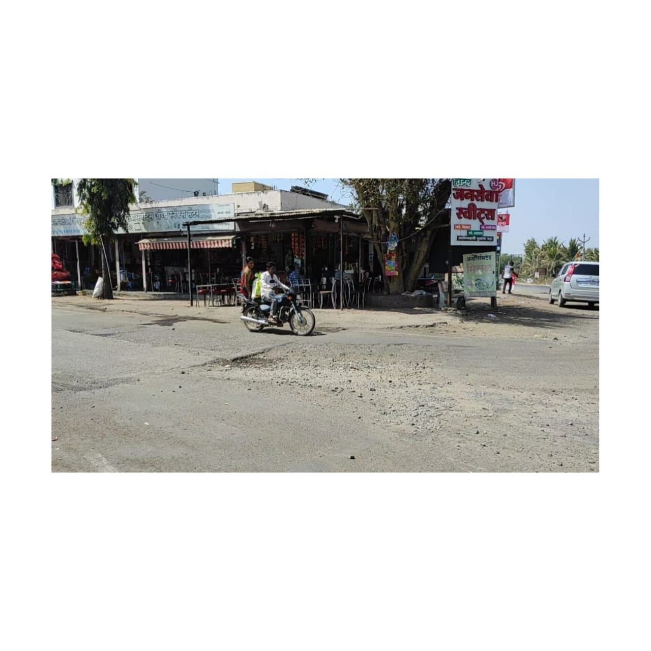सोनेसांगवी येथील पुण्यश्लोक राजमाता अहिल्यादेवी होळकर चौकातील रस्ताही खड्डे पडून अतिशय खराब झालेला आहे. चौकातील खड्ड्यांमुळे या रस्त्यावरून प्रवास करणारे प्रवासी,वाहनचालक, दुचाकीस्वार त्रस्त झालेले असल्याने या रस्त्यावरील साईडपट्टीची दुरूस्ती करून आमदाबाद फाटा चौकातील तसेच सोनेसांगवी येथील पुण्यश्लोक राजमाता अहिल्यादेवी होळकर चौकातील खड्ड्यांची डांबर मिश्रित खडीने दुरूस्ती करण्यात यावी या प्रतिक्षेत तेथील ग्रामस्थ ,प्रवासी, वाहनचालक,दुचाकीस्वार आहेत.