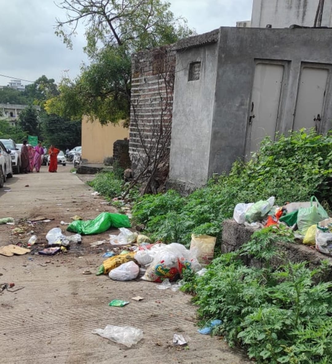स्मशानभूमी रस्त्यावरील कच-यामुळे कोंढापुरी गावाच्या सौंदर्याला बाधा