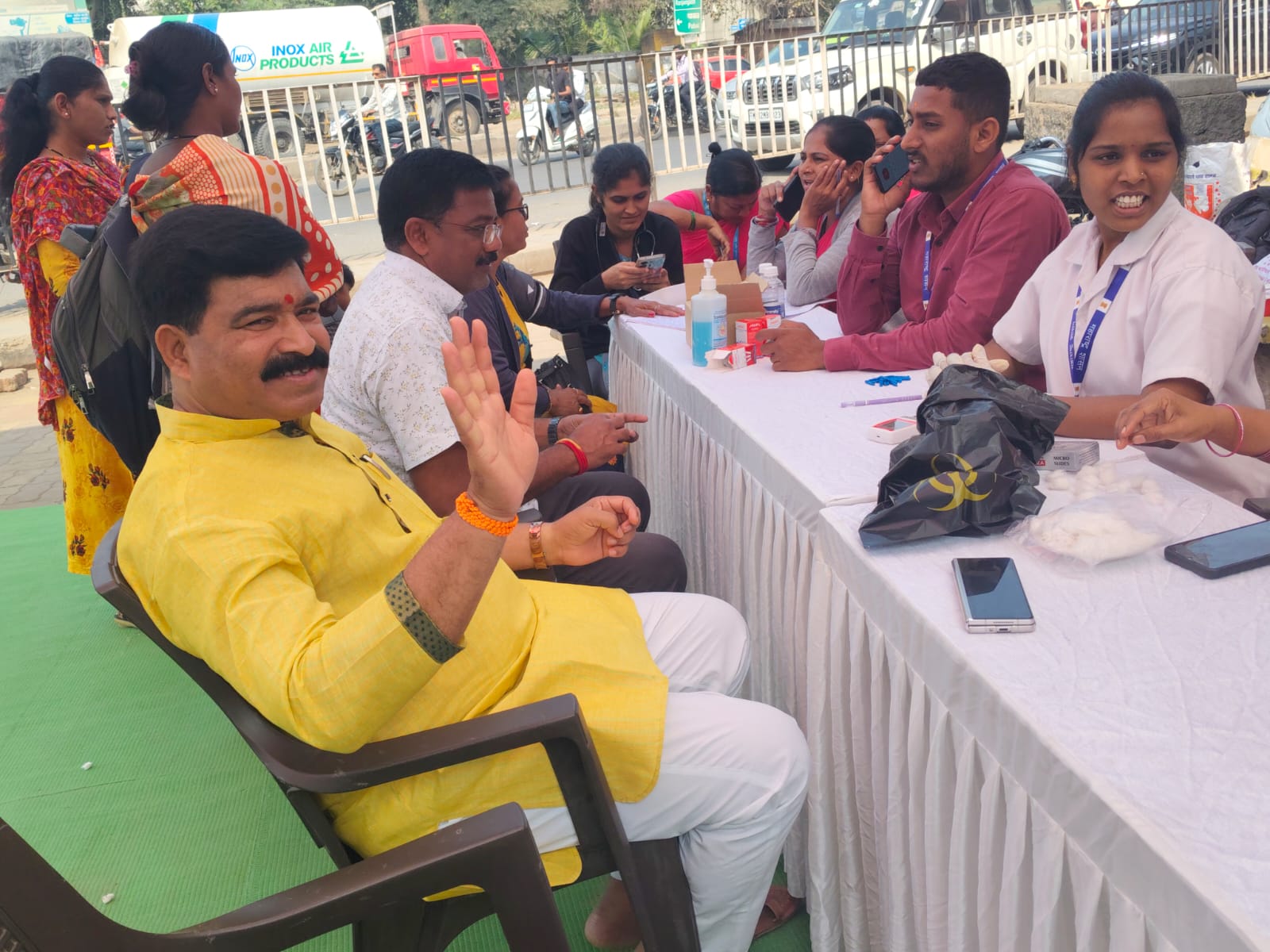 शिरूर:- अॅनिमिया मुक्त गाव अभियानांतर्गत शिरूर तालुक्यातील शिक्रापूर येथे महिलांची आरोग्य तपासणी करण्यात आली. पुणे जिल्हा परिषद,पंचायत समिती शिरूर,मुख्यमंत्री समृद्ध पंचायत राज अभियानांतर्गत आरोग्य उपकेंद्र शिक्रापूर,ग्रामपंचायत शिक्रापूर यांच्या वतीने शिक्रापूर (ता.शिरूर ) येथे अॅनिमिया मुक्त गाव अभियान राबविण्यात आले. या अभियानांतर्गत १५० पेक्षा जास्त महिलांची हिमोग्लोबिन,ब्लडप्रेशर,शुगर तपासणी करण्यात आली. समुदाय अधिकारी डाॅ.प्रतिक्षा आठवले,नयना जाधव सिस्टर,आरोग्य सेवक पवन भवर,आशा वर्कर अर्चना गायकवाड,कल्याणी वाबळे,सुवर्णा तांबे,कविता राऊत,कल्पना ढोकले यांनी महिलांची आरोग्य तपासणी केली. शिक्रापूर गावचे सरपंच रमेशराव गडदे,उपसरपंच वंदनाताई भुजबळ,ग्रामपंचायत सदस्य त्रिनयन कळमकर,सुभाष खैरे,विशाल खरपुडे,मयूर करंजे,कृष्णा सासवडे,प्रकाश वाबळे,उषा राऊत,पुजाताई भुजबळ,सारिकाताई सासवडे,शालनताई राऊत,मोहिनीताई मांढरे,सीमाताई लांडे,ग्रामपंचायत अधिकारी नंदकुमार वैद्य,ग्रामपंचायत कर्मचारी अनंता दरवडे अॅनिमिया मुक्त गाव अभियानात सहभागी झाले होते.