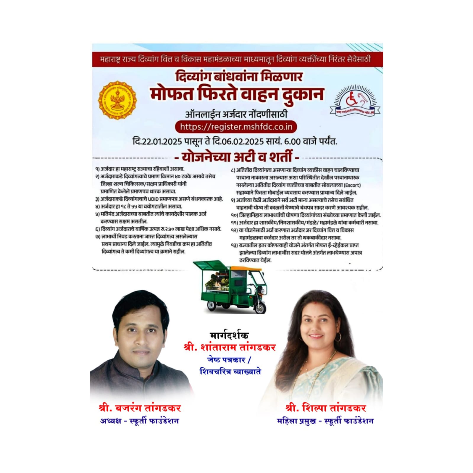 कल्याण :- महाराष्ट्र शासनाची घरेलु महिला कामगार योजना नोंदणी स्फूर्ती फाउंडेशन माध्यमातून सुरू करण्यात आली आहे, घरकाम करणाऱ्या महिलांना या योजनेचा लाभ मिळावा व त्यांच्या जिवनात हातभार लागावा या उद्देशाने दि.६ फेब्रुवारी ते १० फेब्रुवारी शंखेश्वर प्रेसिडेन्सी,शाॅप न १६,आर.टि.ओ.जवळ,टावरी पाडा, कल्याण प.येथे राबविण्यात येत आहे, यासाठी आवश्यक कागदपत्रे सह उपस्थित राहून फाॅर्म भरण्यात येणार आहे व पुढील तपासासाठी संबंधित विभागाकडे पाठविण्यात येणार आहे.तरी ज्या महिला घरकाम करत आहेत अशा महिलांनी नक्की या योजनेचा लाभ घेण्यासाठी घरेलू महिला कामगार योजने मध्ये आपले नाव नोंदणी करावी असे आवाहन स्फूर्ती फाउंडेशन अध्यक्ष बजरंग तांगडकर व महिला प्रमुख शिल्पा तांगडकर यांनी केली आहे