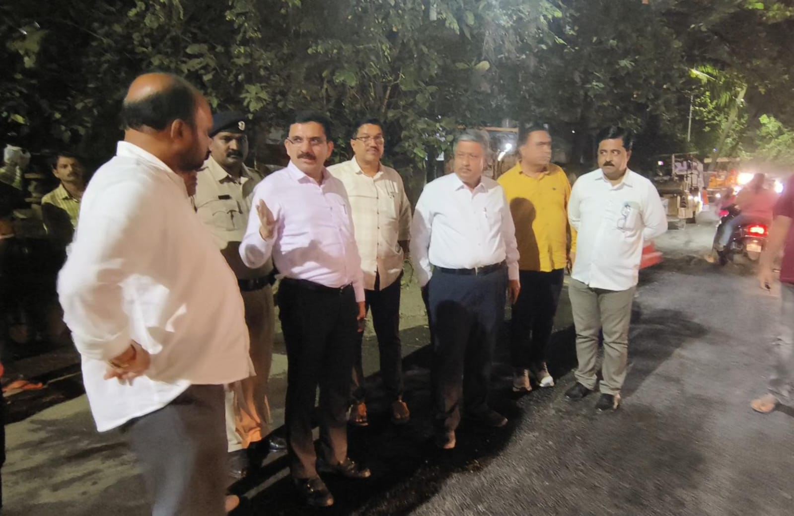 खड्डे भरण्याच्या ठिकाणी रात्रीच्या वेळी अचानक भेट देवून केली पहाणी !