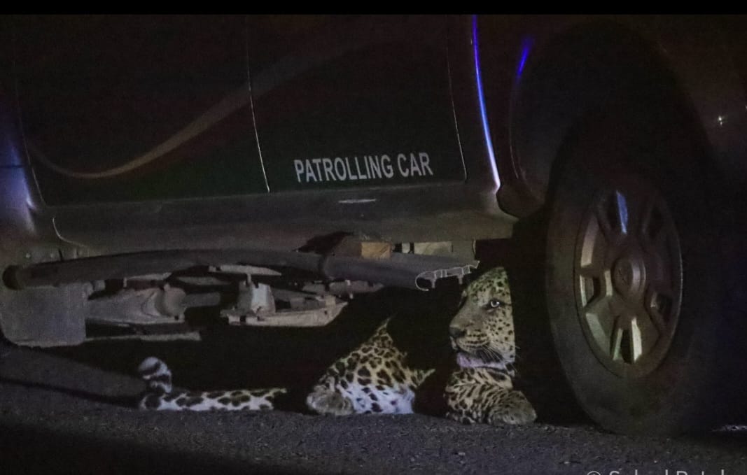 फॉरेस्ट ऑफिसरच्या गाडीखालीच लपला बिबट्या
