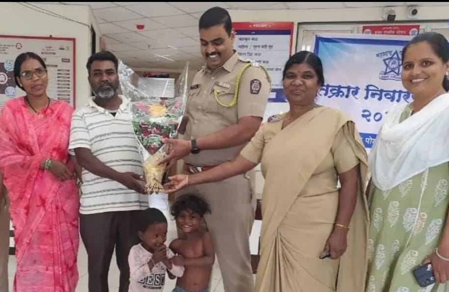 शिक्रापूर (प्रतिनिधी) :- खेळता - खेळता आई वडिलांपासून दूर गेलेल्या, रस्ता ओलांडण्याचा प्रयत्न करत असलेल्या दोन लहानग्यांना पोलीसांच्या स्वाधीन करून समयसूचकता दाखविणा-या दाम्पत्याचा मंचर पोलीस स्टेशनच्या वतीने सत्कार करण्यात आला.