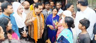 आज दिनांक 19 सप्टेंबर 2022 रोजी सोमवारी नांदगाव तालुक्यातील मनमाड शहरातील रामगुळना पांझण नदीला पूर आल्यानंतर नागरी वस्तीमध्ये मोठ्या प्रमाणात पाणी शिरल्याने नागरिकांचे जीवनावश्यक वस्तू संसार उपयोगी सामान हे संपूर्णपणे पाण्यामध्ये वाहून गेले. तसेच अनेक ठिकाणी घरांची पडझड झाल्यानंतर नांदगाव तालुक्याचे शिवसेनेचे लोकप्रिय आमदार सुहास अण्णा कांदे व त्यांची पत्नी अंजुमताई कांदे यांनी या पूरग्रस्त भागाला भेट देऊन नागरिकांना दिलासा दिला. व तातडीने पंचनामा करण्याचे आदेश आमदार कांदे यांनी नांदगाव तहसीलदार सिद्धार्थ मोरे व संबंधित विभागाला दिले. यानंतर मनमाड नगरपालिकेचे मुख्याधिकारी डॉक्टर सचिन पटेल, नांदगाव चे तहसीलदार डॉक्टर सिद्धार्थ मोरे यांच्यासह कृषी अधिकारी, आरोग्य अधिकारी, पोलीस, नांदगाव पंचायत समितीचे अधिकारी वर्ग, यावेळेस उपस्थित होते.