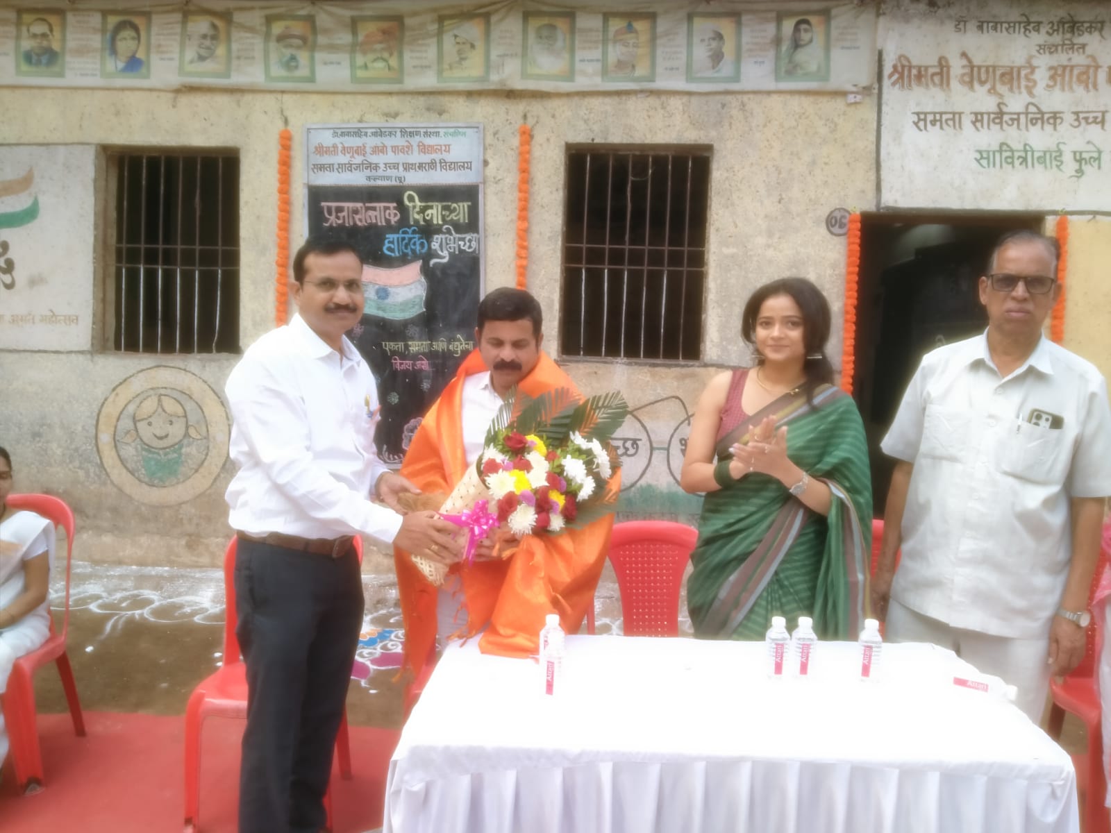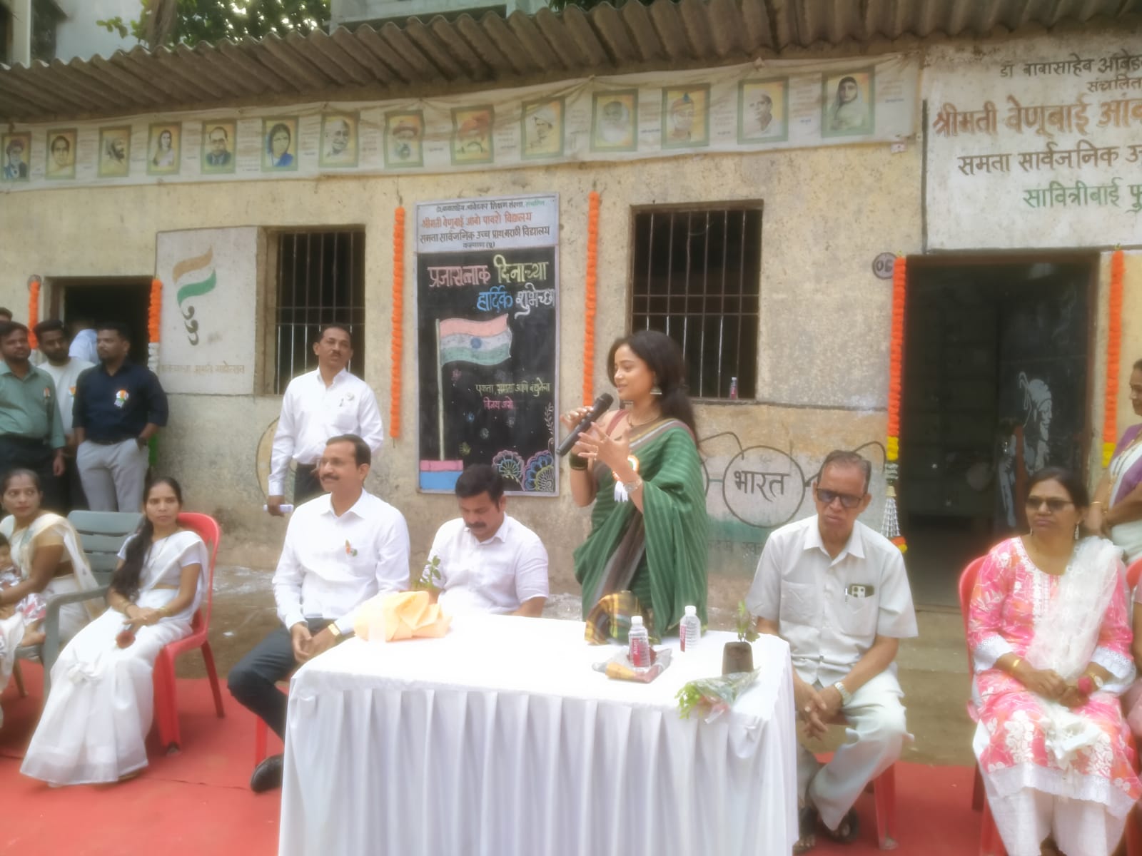 कल्याण ची चुलबुली महाराष्ट्राची हास्यजत्रा फेम अभिनेत्री शिवली परब ही सोमवार दि २६ जानेवारी २०२६ रोजी तिच्या श्रीमती वेणुबाई आंबो पावशे विद्यालय कटेमानिवाली कल्याण पूर्व या शाळेत झेंडावंदन कार्यक्रमासाठी सकाळी ठीक ८.३० पासुन उपस्थित होती. यावेळी संस्थाध्यक्ष प्रमोद जाधव यांच्यासह तिने ध्वजारोहण केले व शाळेतील सांस्कृतिक कार्यक्रमांचा आस्वाद घेऊन स्वतःही एका देशभक्ती गीतावर नृत्याविष्कार केला.तिच्यासोबत बालवाडीपासून शिक्षण घेणारे तिचे सर्व वर्गमित्रही आले होते.शाळेतील विद्यार्थ्यांनी सुमधुर गीताने तिचे व उपस्थित पाहुण्यांचे स्वागत केले.मुलांची संगीत कवायत,बक्षीस वितरण,भाषणे व समुहगीतानंतर मुख्याध्यापक भानुदास मडके यांनी प्रास्ताविकात शाळेची गुणवत्ता व उपक्रम याबाबत माहिती देताना शिवलिच्या शालेय जीवनातील आठवणींना उजाळा दिला.त्यानंतर शिवली परब हिने मनोगत व्यक्त करताना सांगितले की वेणूबाई पावशे विद्यालय या मराठी माध्यमाच्या शाळेमुळेच आमच्यासारख्या मध्यमवर्गीय कुटुंबातील मुलींना उत्तम दर्जाचे शिक्षण,संस्कार मिळाले त्यामुळेच आम्ही घडू शकलो.माझ्या यशात माझ्या शाळेचा मोलाचा वाटा आहे त्यामुळे मी कधीही माझ्या मराठी शाळेला विसरणार नाही. माझ्या शाळेतील शिक्षकांनी केलेलं कौतुक हा माझ्यासाठी सर्वात मोठा पुरस्कार आहे. कार्यक्रमाच्या शेवटी संस्थाध्यक्ष प्रमोद जाधव यांनी मोठ्यासंखेने उपस्थित आजी माजी विद्यार्थी व पालकांना प्रजासत्ताक दिनाच्या शुभेच्छा दिल्या.संस्थासदस्य अभिमन्यू भालेराव,कालीराम चौधरी सर,बाळू सुतार सर,आशाताई शेडगे,आशाताई पावशे,दामोदर ताई,कांबळे ताई,कालबेंडे मॅडम,चतुर मॅडम,बावकर मॅडम,सोनवणे मॅडम,चौधरी मॅडम,जगे सर,नेमाडे मॅडम इत्यादीनी शाळेची चहुबाजूने प्रगती व्हावी व शाळा द्विगुणीत उत्तरोत्तर वाढत जाऊन शिवली सारखे अनेक विद्यार्थी घडावेत यासाठी विद्यार्थ्याना शुभेच्छा दिल्या.सूत्रसंचालिका तांबे मॅडम यांनी उपस्थितांचे आभार व्यक्त करून कार्यक्रमाची सांगता केली