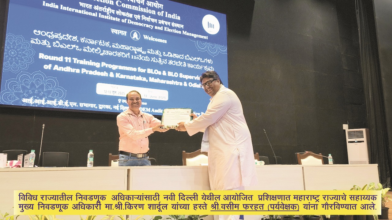 भारत निवडणूक आयोगाच्या वतीने १२ व १३ जून रोजी महाराष्ट्रासह आंध्र प्रदेश,कर्नाटक आणि ओडिशा या राज्यांतील निवडणूक अधिकाऱ्यांसाठी नवी दिल्लीत प्रशिक्षण आयोजित करण्यात आले होते. यात जिल्हाधिकारी,उप जिल्हाधिकारी,तहसीलदार,नायब तहसीलदार,पर्यवेक्षक आणि बीएलओ अधिकारी सहभागी झाले होते. महाराष्ट्रातून एकूण १३२ अधिकारी या प्रशिक्षणात उपस्थित होते. या प्रशिक्षणात अमरावती जिल्ह्यातील बडनेरा 37 विधानसभा मतदारसंघाचे प्रतिनिधित्व करताना,वसीम फरहत यांनी मतदान प्रक्रिया अधिक सुलभ व प्रभावीपणे राबवण्याबाबत केंद्रस्तरीय मतदान अधिकारी यांना अद्यावत राहणे नितांत गरजेचे आहे,असे मनोगत व्यक्त केले. या प्रशिक्षणात अमरावती जिल्ह्याचे जिल्हाधिकारी सौरभ कटियार हे ही उपस्थित होते.