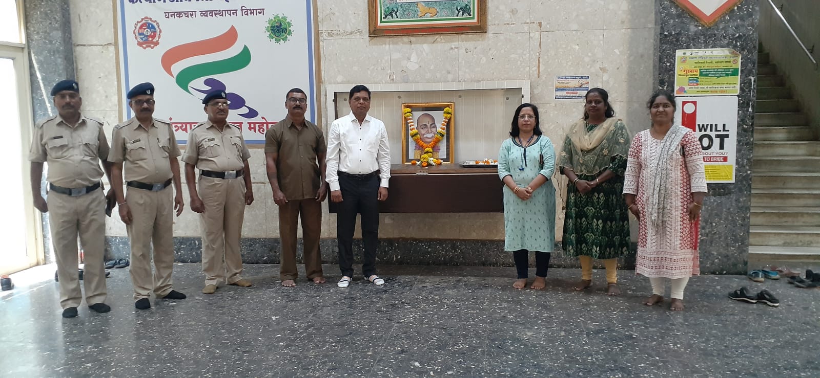 राष्ट्रसंत तुकडोजी महाराज यांच्या जयंती दिनी आज महापालिका उपसचिव किशोर शेळके यांनी महापालिका मुख्यालयात राष्ट्रसंत तुकडोजी महाराज यांच्या प्रतिमेस पुष्पहार अर्पण करुन अभिवादन केले. सदर समयी उपस्थित माहिती व जनसंपर्क अधिकारी माधवी पोफळे, सहा.आयुक्त हेमा मुंबरकर, तसेच इतर कर्मचारी वर्ग यांनी देखील राष्ट्रसंत तुकडोजी महाराज यांच्या प्रतिमेस पुष्पहार अर्पण करुन अभिवादन केले.