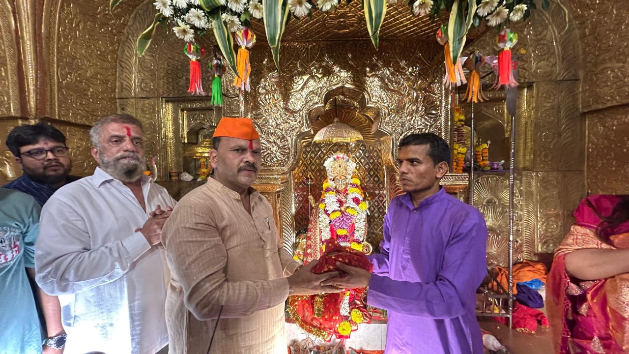 माजी आमदार नरेंद्र पवार न्यायालयाच्या निकालानंतर दुर्गादेवीचे दर्शन घेत केली आरती