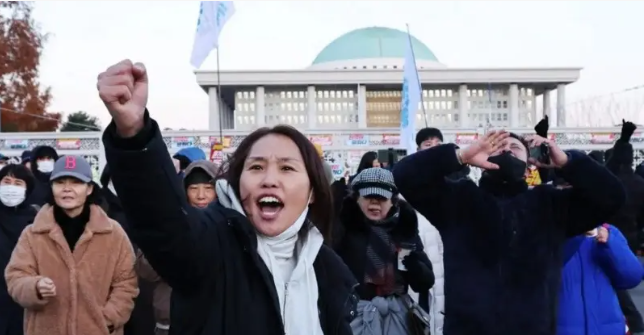 दक्षिण कोरियात लष्करी राजवट (मार्शल लॉ) लागू करण्याचे आदेश राष्ट्रपती यांनी दिले होते. पण लोकांनी केलेल्या तीव्र निदर्शनांमुळे आणि सर्व खासदारांनी आपला एकमताने विरोध दर्शवल्यानंतर हा आदेश परत घेण्यात आले आहेत. या सर्व घटनाक्रमाच्या दुसऱ्या दिवशी दक्षिण कोरियात तीव्र निदर्शनं सुरू असून राष्ट्रपती युन सुक योल यांच्याविरोधात महाभियोग चालवण्यात यावा अशी मागणी करण्यात येत आहे.