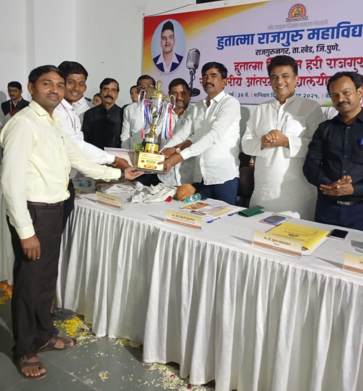 शिक्रापूर :- खेड तालुका शिक्षण प्रसारक मंडळाच्या हुतात्मा राजगुरू महाविद्यालयात आयोजित करण्यात आलेल्या ‘हुतात्मा शिवराम हरी राजगुरू राज्यस्तरीय आंतरमहाविद्यालयीन वक्तृत्व स्पर्धेत’ तळेगाव ढमढेरे येथील शिक्षण प्रसारक मंडळाच्या साहेबराव शंकरराव ढमढेरे कला व वाणिज्य महाविद्यालयाने तृतीय क्रमांकाचे पारितोषिक पटकावले.