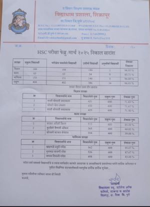शिरूर :- शिरूर तालुक्यातील शिक्रापूर येथील विद्याधाम प्रशालेचा एच एस सी परिक्षेचा एकूण निकाल ९६.०१ टक्के लागला आहे.