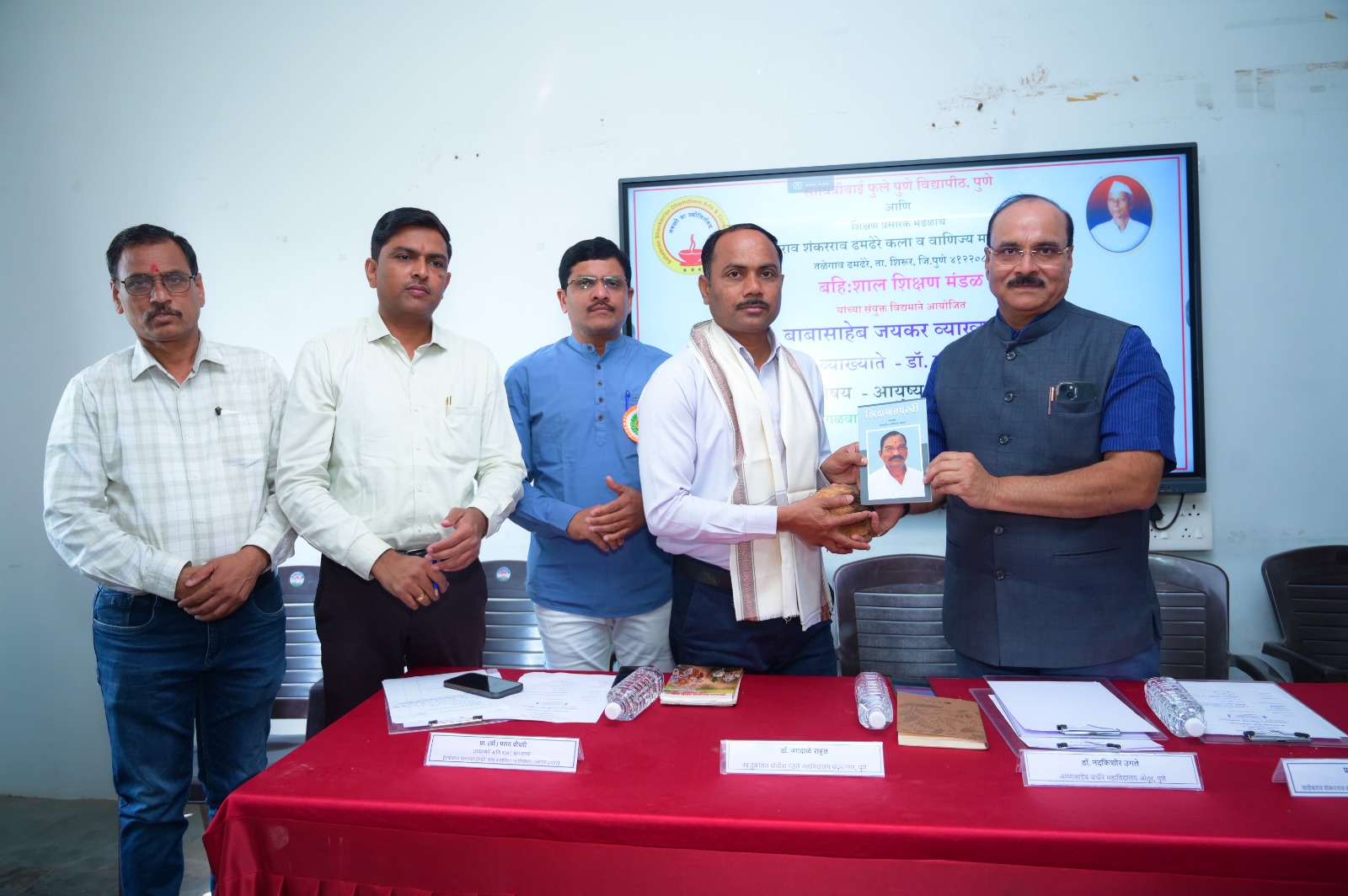 शिक्रापूर :- राष्ट्रसंत तुकडोजी महाराज हे खऱ्या अर्थाने राष्ट्रनिर्माते होते. त्यांच्या ग्रामगीतेतील विचार आजही सातत्याने युवकांना प्रेरणा देत असल्याचे प्रतिपादन ओतूर येथील अण्णासाहेब वाघीरे महाविद्यालयाचे राज्यशास्त्र विभाग प्रमुख नंदकिशोर उगले यांनी केले. तळेगांव ढमढेरे,येथील शिक्षण प्रसारक मंडळ आणि शकुंतला फाऊंडेशन यांच्या संयुक्त विद्यमाने आज तळेगांव ढमढेरे येथील साहेबराव शंकरराव ढमढेरे महाविद्यालयात आयोजित साहेबराव शंकरराव ढमढेरे स्मृती व्याख्यानमालेत '' राष्ट्रसंत तुकडोजी महाराज " या विषयावरील द्वितीय पुष्प गुंफताना उगले बोलत होते. याशिवाय सावित्रीबाई फुले पुणे विद्यापीठ बहि:शाल शिक्षण मंडळाची तीन दिवसीय डॉ. बाबासाहेब जयकर व्याख्यानमाला महाविद्यालयात सुरू आहे. त्या व्याख्यानमालेचेही आज द्वितीय पुष्प राहुल जगदाळे यांनी गुंफले. महाविद्यालयाचे प्राचार्य अर्जुन मुसमाडे कार्यक्रमाच्या अध्यक्षस्थानी होते. शिक्षण प्रसारक मंडळ आणि विद्या सहकारी बँकेचे संचालक महेशबापू ढमढेरे, शकुंतला फाऊंडेशनच्या अध्यक्षा शोभाताई महेशबापू ढमढेरे,उपप्राचार्य प्रा.पराग चौधरी, व्याख्यानमालेचे समन्वयक दत्तात्रय वाबळे,बहिशाल शिक्षण मंडळाच्या केंद्र कार्यवाह संभाजी शिंदे आदि यावेळी उपस्थीत होते. साहेबरावअण्णा शंकरराव ढमढेरे स्मृती व्याख्यानमालेचे यंदाचे सातवे वर्ष आहे. उगले पुढे म्हणाले की,आजचा भारत विकसित होत असताना युवकांना निश्चित अशी दिशा देणे गरजेचे आहे. आजूबाजूच्या अस्वस्थ वातावरणात सुयोग्य आचरणाची बीजे तुकडोजी महाराजांच्या ग्रामगीतेमध्ये आपल्याला दिसतात. त्यामुळे जीवनाचे सार्थक करायचे असेल तर राष्ट्रसंतांचे विचारच आपल्याला सदाचाराच्या मार्गावर घेऊन जात असल्याचे डॉ. उगले यांनी सांगितले. राहुल जगदाळे यांनीही यावेळी मराठी राजभाषा दिनाचे औचित्य साधून "अभिजात मराठी भाषा" या विषयावर आपले मनोगत व्यक्त केले. मराठी भाषा ही बोलीभाषा ज्ञानसंपन्न आणि समृद्ध असल्याचे ते म्हणाले. प्रभावी अभिव्यक्तीचे मातृभाषा हे प्रमुख साधन असल्याचे त्यांनी सांगितले. मराठीमध्ये व्यापक आणि विपुल अशी ग्रंथसंपदा असून युवकांनी सातत्याने वाचन करणे गरजेचे असल्याचे जगदाळे म्हणाले. विविध पंथ,संप्रदाय आणि समृद्ध अशी परंपरा असलेली आपली मराठी भाषा असून तिचे जतन आणि संवर्धन करण्यासाठी प्रत्येकाने आपापली जबाबदारी निभावणे आवश्यक असल्याचे त्यांनी सांगितले. अध्यक्षीय मनोगत व्यक्त करताना महाविद्यालयाचे प्राचार्य आणि सावित्रीबाई फुले पुणे विद्यापीठाच्या भूगोल अभ्यास मंडळाचे अध्यक्ष डॉ. अर्जुन मुसमाडे यांनी तरुणांनी सातत्याने सदविचारांचा आग्रह