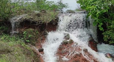 कोंढापुरी येथील पाझर तलावाचा धबधबा प्रवाहीत