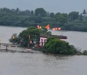पंढरपूर :- पंढरपूर तालुक्यात मुसळधार पाऊस सुरु असल्याने भीमा नदीची पातळी कमालीची वाढली आहे. त्यातच आता एक चिंताजनक बातमी समोर येत आहे.गुरसाळे येथे भीमा नदी पात्रात असलेल्या महादेव मंदिरात तीन महाराज अडकल्याचे समोर येत आहे. आपत्ती व्यवस्थापन पथकाकडून बचावकार्य सुरु करण्यात आले आहे.सुभाष ढवन, विठ्ठल लोहकरे आणि जाधव महाराज असे या महाराजांची नावे आहेत. आज सकाळी पूजेसाठी हे तीन महाराज मंदिरात गेले होते. मात्र त्यानंतर पाणी वाढत गेलं आणि यांना बाहेर येता आले नाही. त्यानंतर त्यांनी मदतीला गावकऱ्यांना सांगितल्यावर गावकऱ्यांनी प्रशासनाची संपर्क साधला.त्यानंतर थोड्याच वेळात आपत्ती व्यवस्थापनाची टीम घटनास्थळी दाखल झाली. हे तीन महाराज सुरक्षित असल्याची माहिती समोर येत आहे. तीनही महाराज मंदिराच्या बाहेरच आहेत. मंदिर चढावर असल्यामुळे तिथे अजून पाणी पोहोचले नाही, मात्र त्यांना बाहेर येता येत नसल्यामुळे त्यांना काढण्यासाठी आता आपत्ती व्यवस्थापनाची टीम पोहोचली आहे. पुढील काही वेळेत त्यांना सुरक्षित रितीने बाहेर काढले जाणार असल्याची माहिती प्रशासनाने दिली आहे.