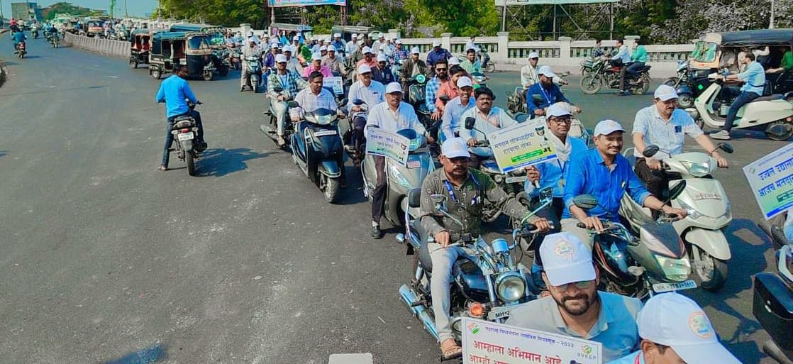 मा.भारत निवडणूक आयोगाचे निर्देशानुसार अमरावती जिल्ह्यामध्ये SVEEP कार्यक्रमाची अंमलबजावणी करणेबाबतची कार्यवाही करण्यात येत आहे. मतदानाची टक्केवारी वाढविण्यासाठी नागरिकांमध्ये जनजागृती आणि प्रबोधन करण्याच्या सुचना आहे. सोमवार दिनांक १८ नोव्हेंबर,२०२४ रोजी सकाळी ९.०० वाजता मतदान जनजागृती भव्य बाईक महारॅली चे आयोजन करण्यात आले. ही मतदान जनजागृती रॅली मा. जिल्हाधिकारी सौरभ कटियार यांचे नेतृत्वात मनपा आयुक्त तथा प्रशासक सचिन कलंत्रे यांनी आयोजित केली होती. सदर रॅलीमध्ये पद्मश्री शंकर बाबा पापळकर उपस्थित होते. यावेळी सर्व मान्यवरांचे स्वागत करुन कार्यक्रमाला सुरुवात करण्यात आली.