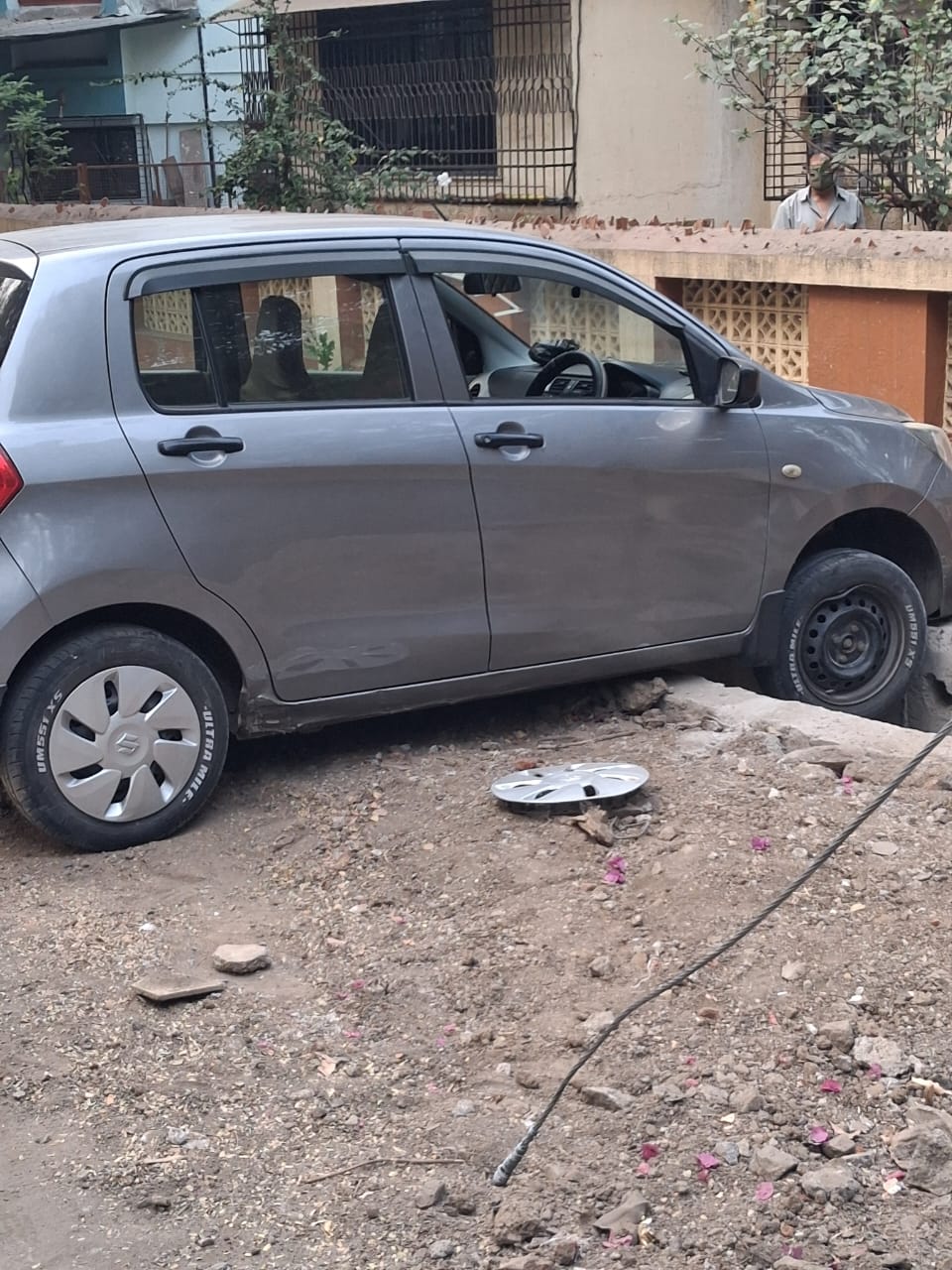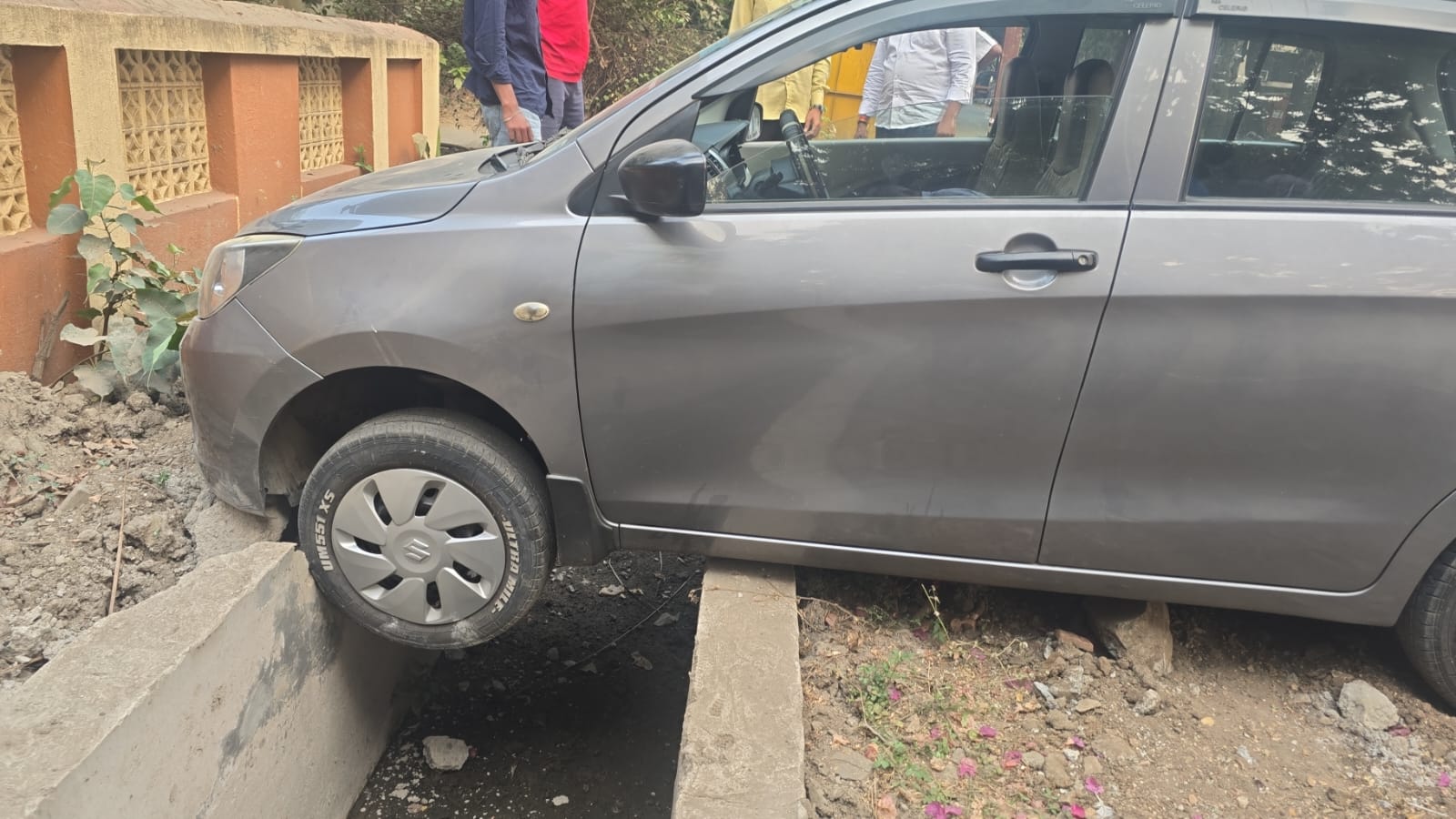 वाहन शिकताना कार गेली गटारात,सुदैवाने कोणतीही दुर्घटना घडली नाही.