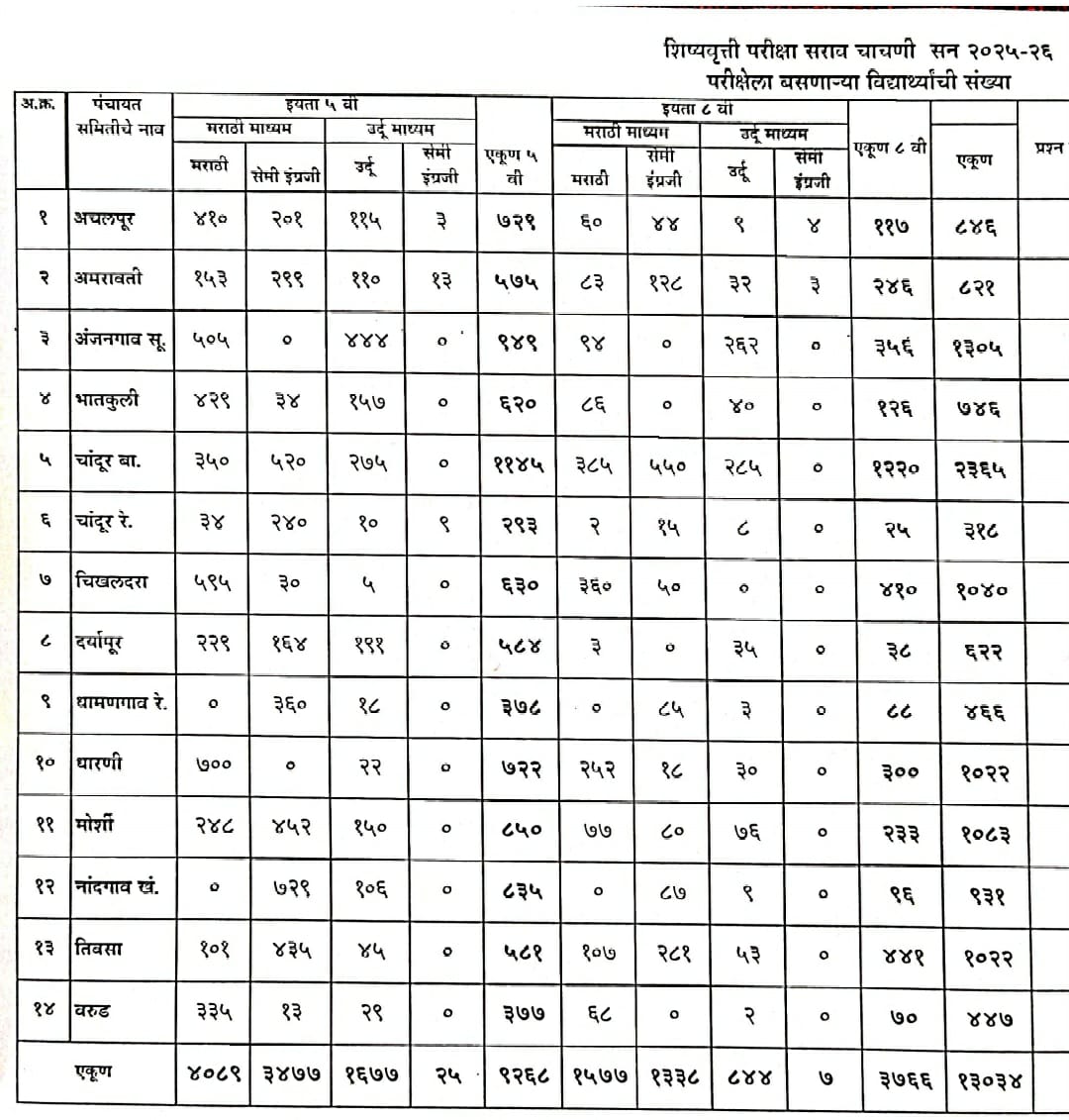 अमरावती :- अमरावती जिल्हा परिषदच्या मुख्य कार्यकारी अधिकारी संजिता महापाञ यांच्या संकल्पनेतुन मिशन १०० स्काॅलरशिप हे जिल्हा परीषद शाळेतील वर्ग ५वी व ८वी च्या विद्यार्थाची स्पर्धा परीक्षेची पूर्व तयारी म्हणुन शिक्षण विभागाच्या सहकार्याने १२ आॅगस्टला जिल्हातील ५वीच्या ९२६८व८वीच्या ३७६६अश्या १३०३४ विद्यार्थांची शिष्यवृती परीक्षा सराव चाचणी घेण्यात येणार आहे. जिल्हातील १४ही तालुक्यातील मराठी,उर्दू व सेमी इग्रजी माध्यमाच्या विद्यार्थांना १००%सराव चाचणी दयावी लागणार आहे. विशेष म्हणजे अमरावती जिल्हा परीषद कडून प्रश्न पञिका व उत्तर पञिका सर्व शाळेला पुरविण्यात आल्या आहे. विद्यार्थांचा सराव होऊन शिष्यवृत्ती परीक्षेत १००% यश प्राप्त करावे हा या सराव परीक्षेचा उद्देश आहे अशी माहीती मुख्य कार्यकारी अधिकारी संजिता महापाञ यांनी दिली आहे.